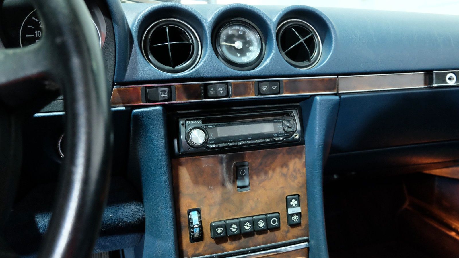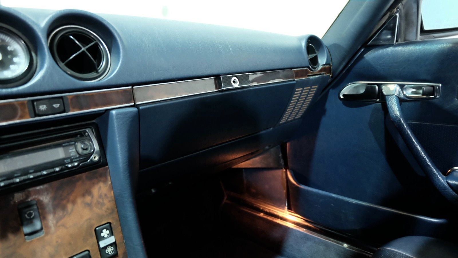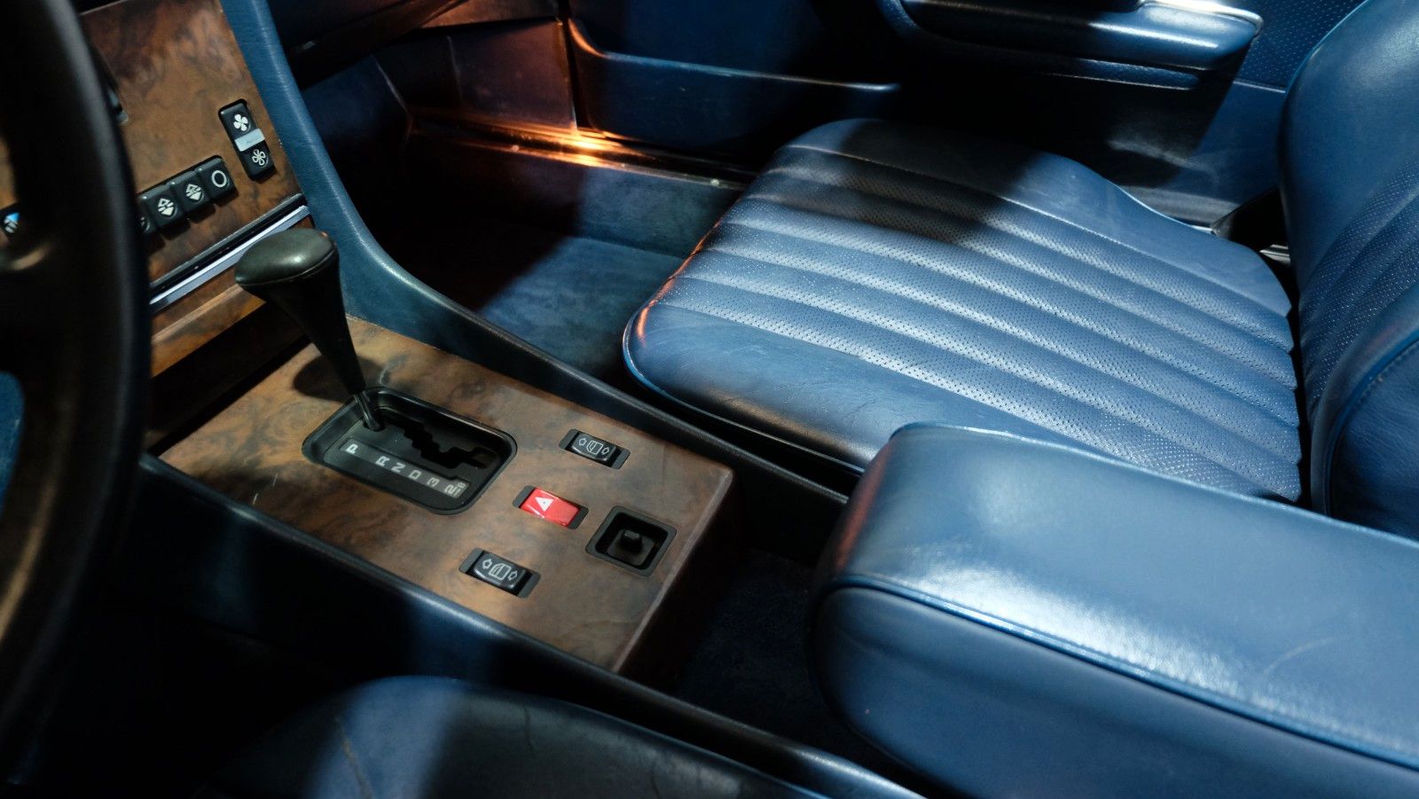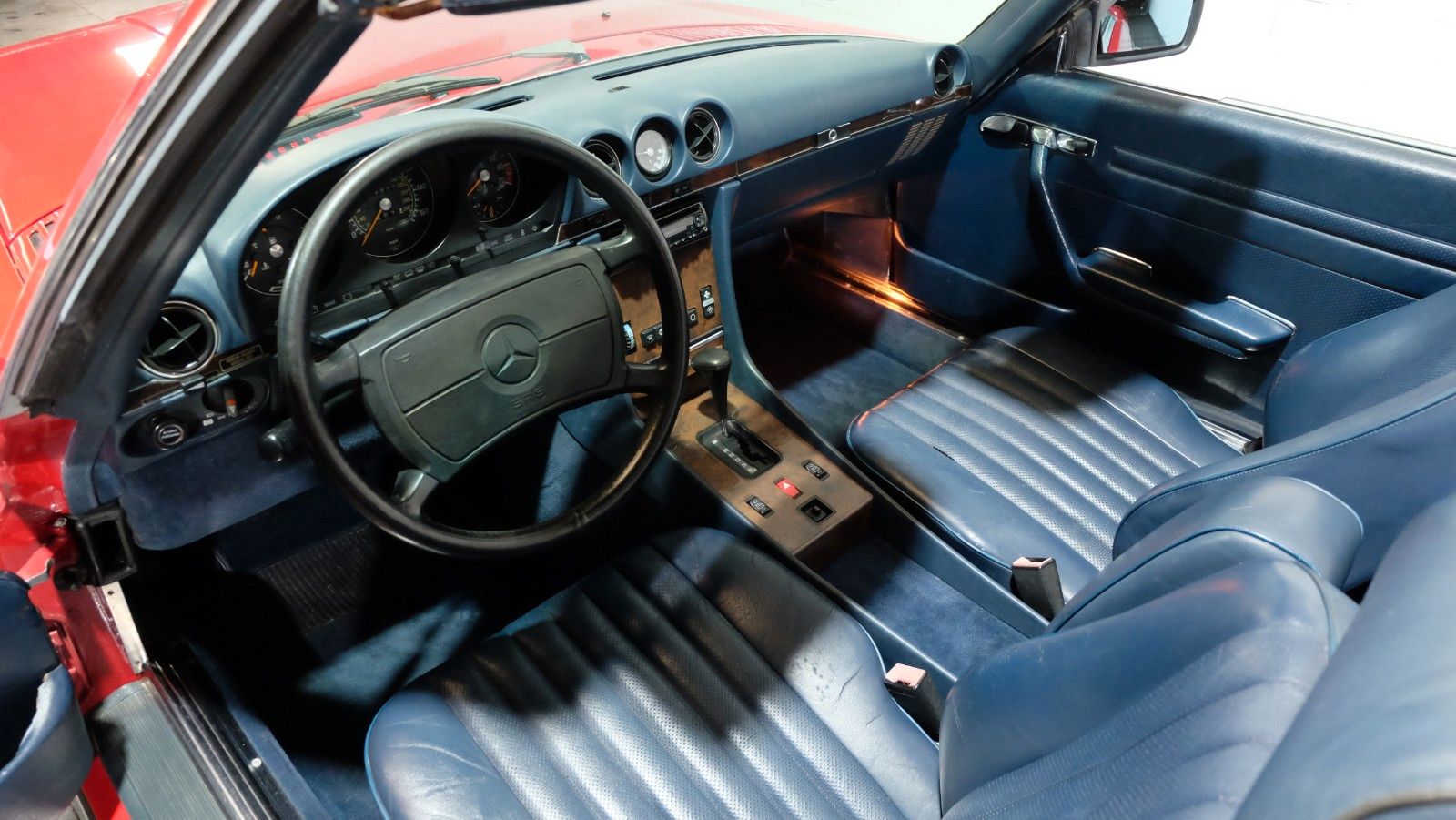 Die vornehme Lederaustattung wird ergänzt durch edle Holzverkleidungen und zahlreiche Ausstattungsmerkmale, die diesen 560SL zu einem der luxuriösesten Roadster seiner Zeit machen.